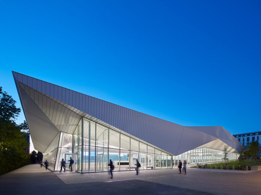 - The facility works with the scale of its neighboring buildings to create a defined public realm on three sides.